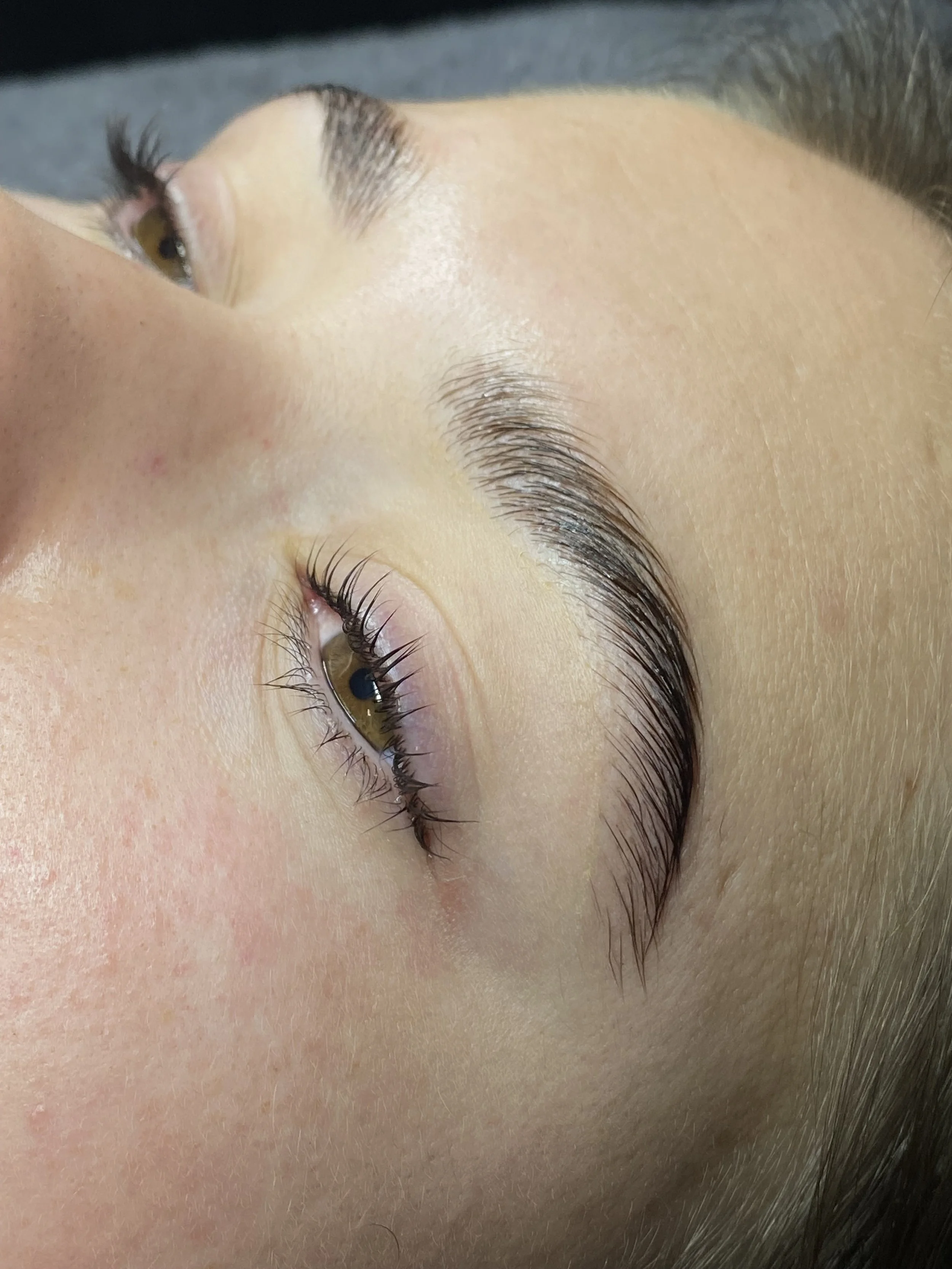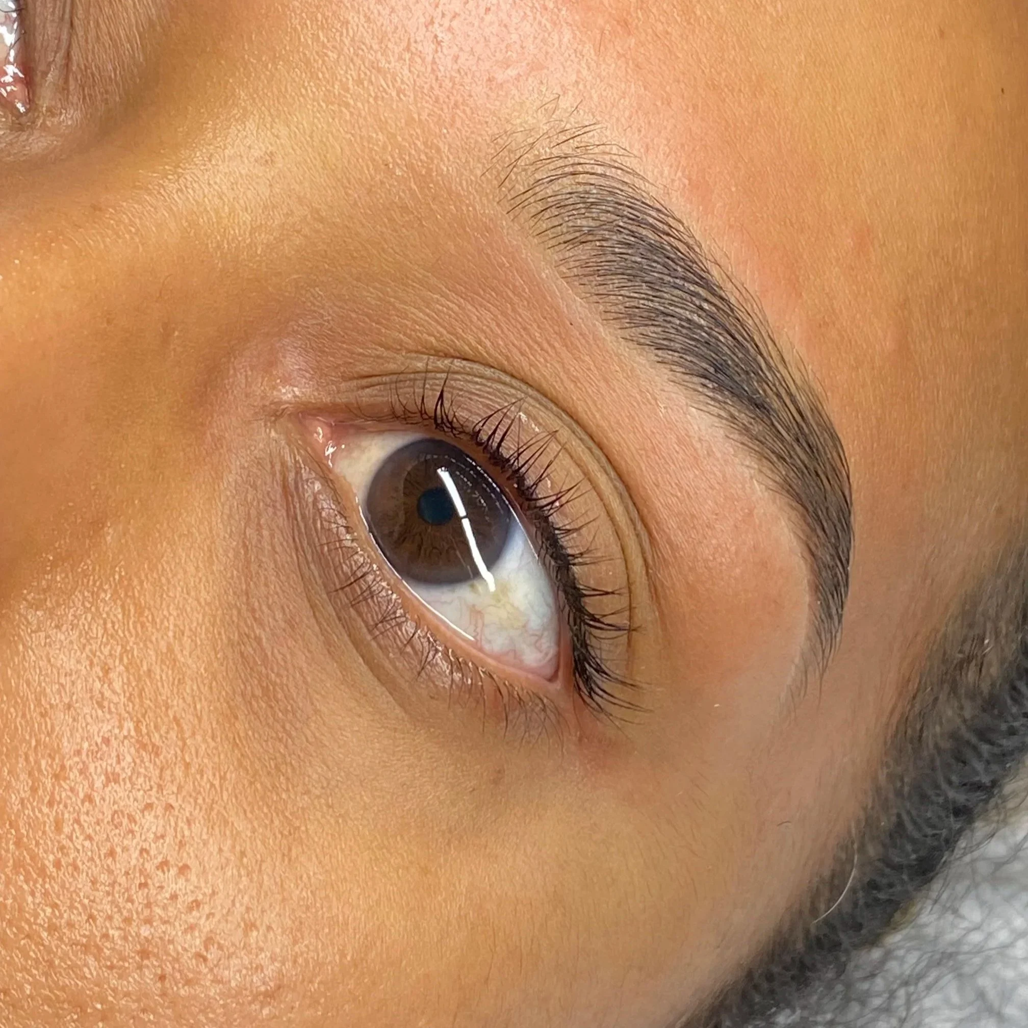 Precision tinting, lamination and shaping that enhance your natural structure paired with a lash lift and tint to open and define the eyes.